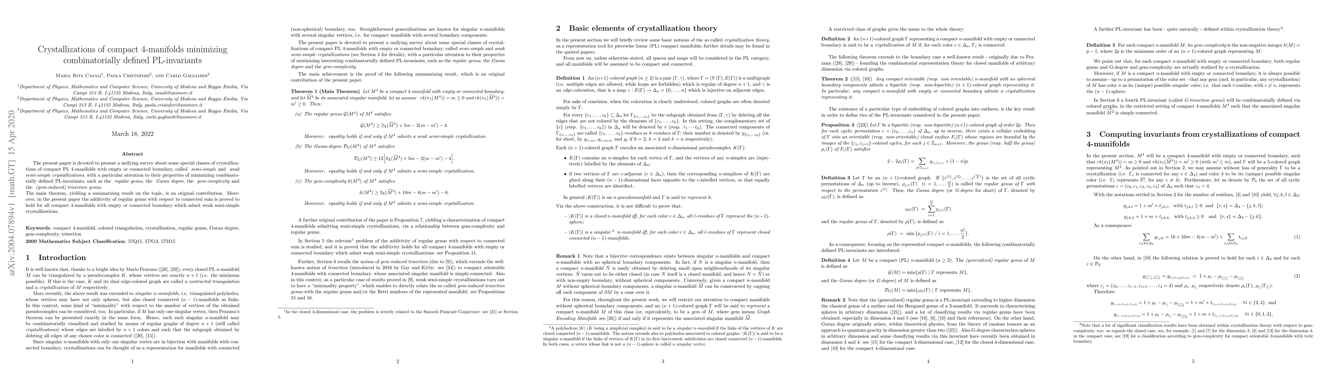This paper surveys special classes of crystallizations of compact PL 4-manifolds, focusing on semi-simple and weak semi-simple crystallizations that minimize combinatorially defined PL-invariants. The main theorem proves the additivity of the regular genus for these manifolds.