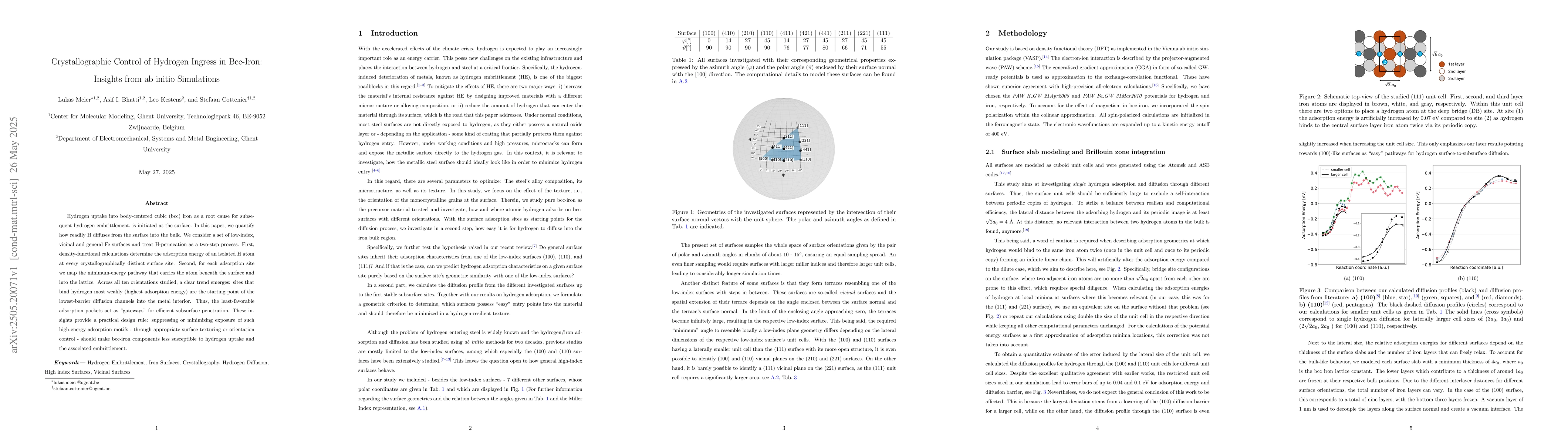 The paper presents a detailed ab initio simulation study on hydrogen ingress in bcc-iron, revealing crystallographic control over hydrogen permeation.