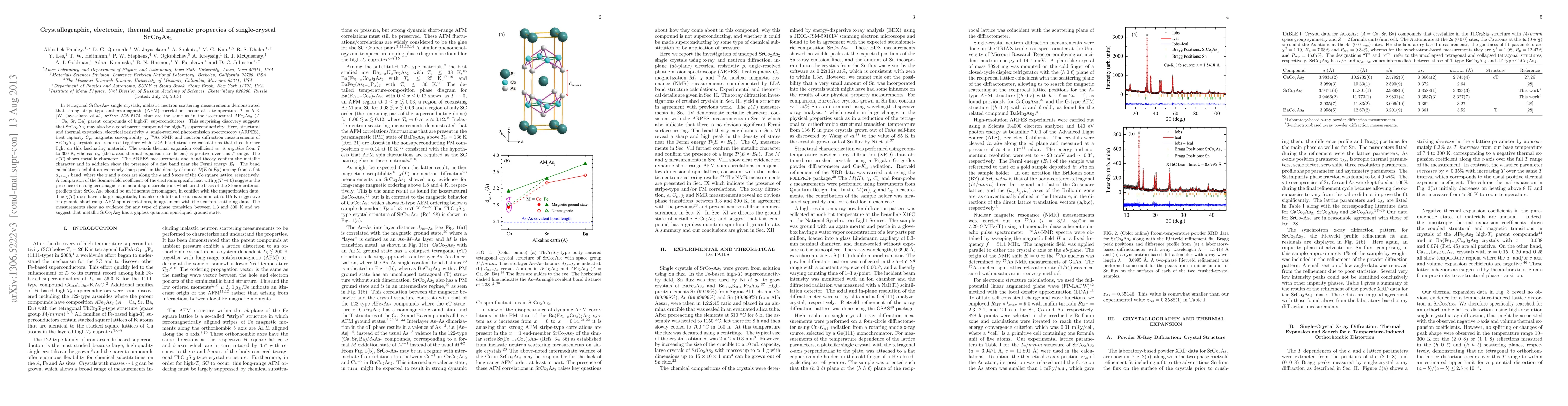 SrCo2As2 single crystals exhibit strong stripe-type antiferromagnetic correlations at 5 K, similar to high-Tc superconductor parent compounds. Despite predictions of itinerant ferromagnetism, magnetic susceptibility data suggest dynamic short-range AFM spin correlations, indicating a gapless quantum spin-liquid ground state.