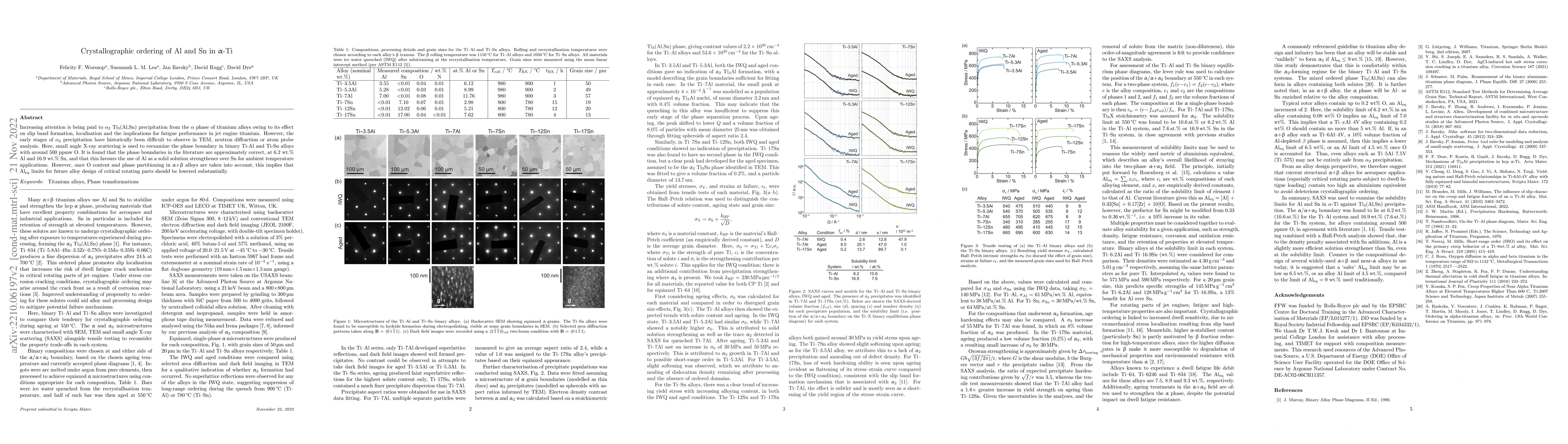 This study uses small angle X-ray scattering to investigate the early stages of $\alpha$$_2$ Ti$_3$(Al,Sn) precipitation in titanium alloys, confirming phase boundaries at 6.2 wt.% Al and 16.9 wt.% Sn, suggesting Al is more effective than Sn for ambient temperature applications, but alloy design should consider lowered Al$_{eq}$ limits due to oxygen content and phase partitioning.