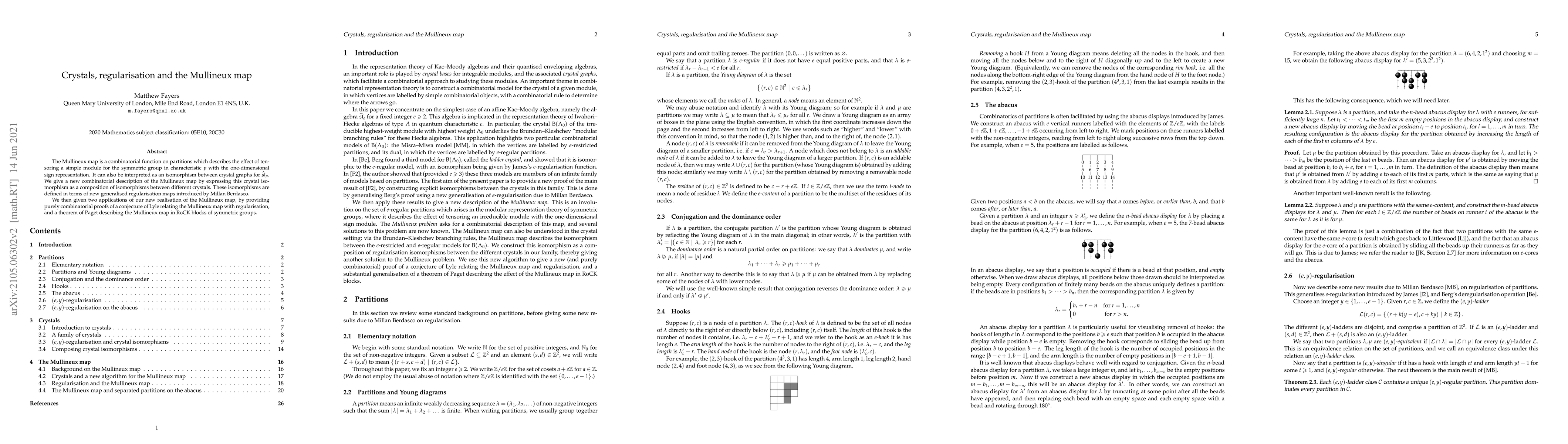 The Mullineux map is a combinatorial function on partitions which describes the effect of tensoring a simple module for the symmetric group in characteristic $p$ with the one-dimensional sign representation. It can also be interpreted as an isomorphism between crystal graphs for $\widehat{\mathfrak{sl}}_p$. We give a new combinatorial description of the Mullineux map by expressing this crystal isomorphism as a composition of isomorphisms between different crystals. These isomorphisms are defined in terms of new generalised regularisation maps introduced by Millan Berdasco. We then given two applications of our new realisation of the Mullineux map, by providing purely combinatorial proofs of a conjecture of Lyle relating the Mullineux map with regularisation, and a theorem of Paget describing the Mullineux map in RoCK blocks of symmetric groups.