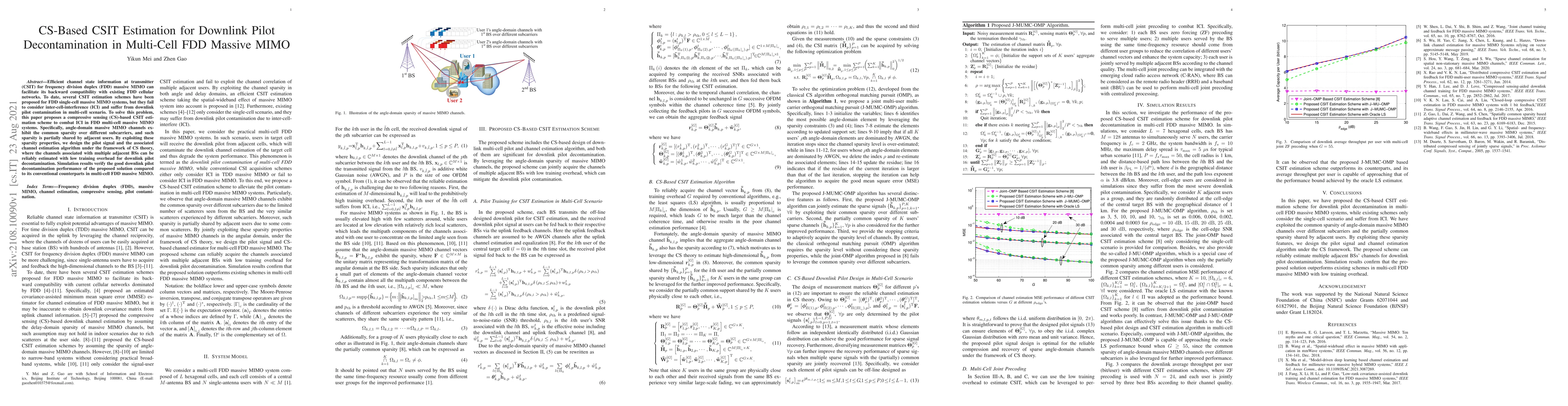 This paper proposes a compressive sensing (CS)-based CSIT estimation scheme to address inter-cell interference and downlink pilot contamination in multi-cell FDD massive MIMO systems. By leveraging the sparsity properties of angle-domain channels, the method efficiently estimates channels across multiple adjacent base stations with low training overhead.