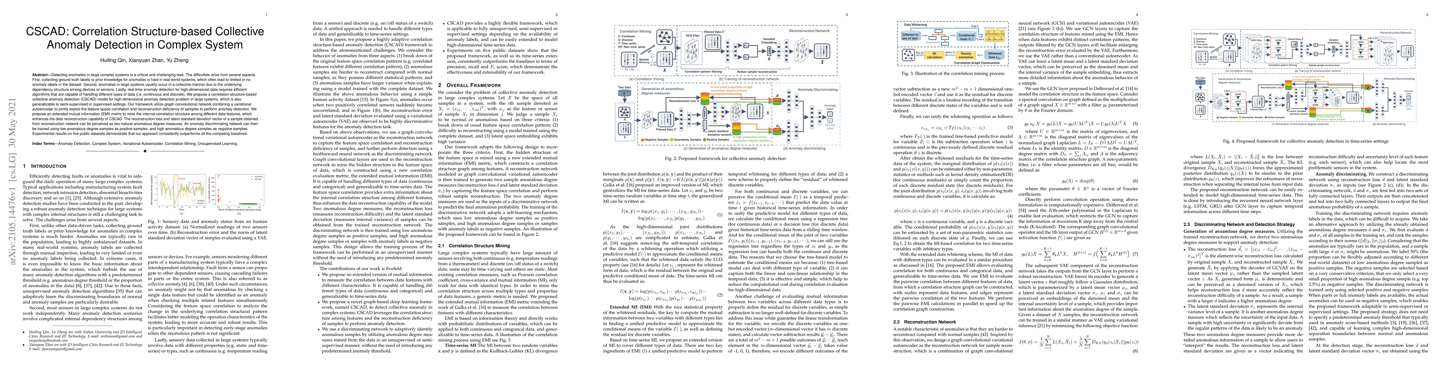 The research introduces CSCAD, a model for detecting collective anomalies in complex systems using correlation structures. It combines graph convolutional networks and variational autoencoders, and proposes an extended mutual information metric for enhanced reconstruction. Experiments show CSCAD outperforms baselines on various datasets.