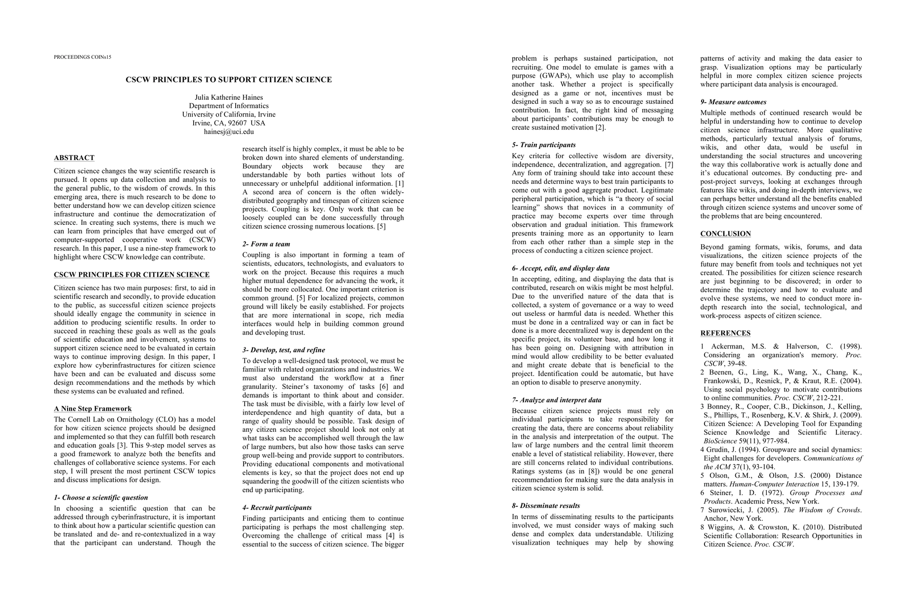 Citizen science changes the way scientific research is pursued. It opens up data collection and analysis to the general public, to the wisdom of crowds. In this emerging area, there is much research to be done to better understand how we can develop citizen science infrastructure and continue the democratization of science. In creating such systems, there is much we can learn from principles that have emerged out of computer-supported cooperative work (CSCW) research. In this paper, I use a nine-step framework to highlight where CSCW knowledge can contribute.