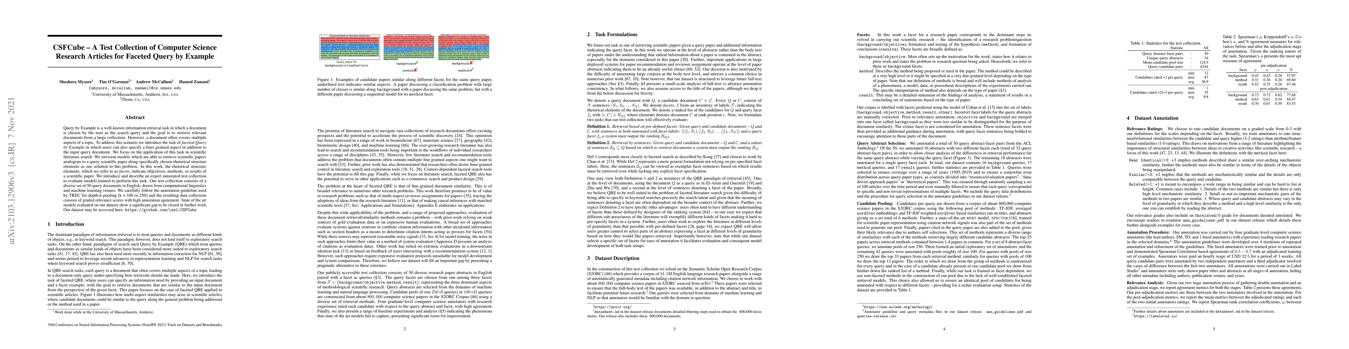 A new dataset called CSFCube is introduced for testing models that can search scientific papers based on specific aspects of the paper, such as methods or results.