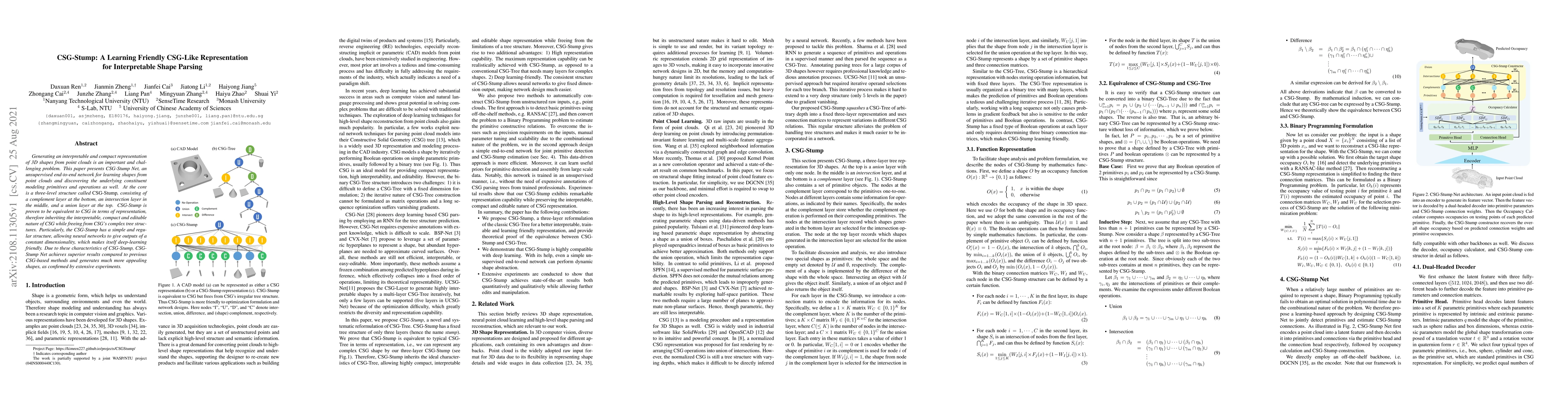 This paper introduces CSG-Stump Net, an unsupervised network that learns interpretable and compact 3D shape representations from point clouds. The core CSG-Stump structure, consisting of complement, intersection, and union layers, offers the benefits of Constructive Solid Geometry (CSG) without its complex tree structures, enabling superior shape parsing results.