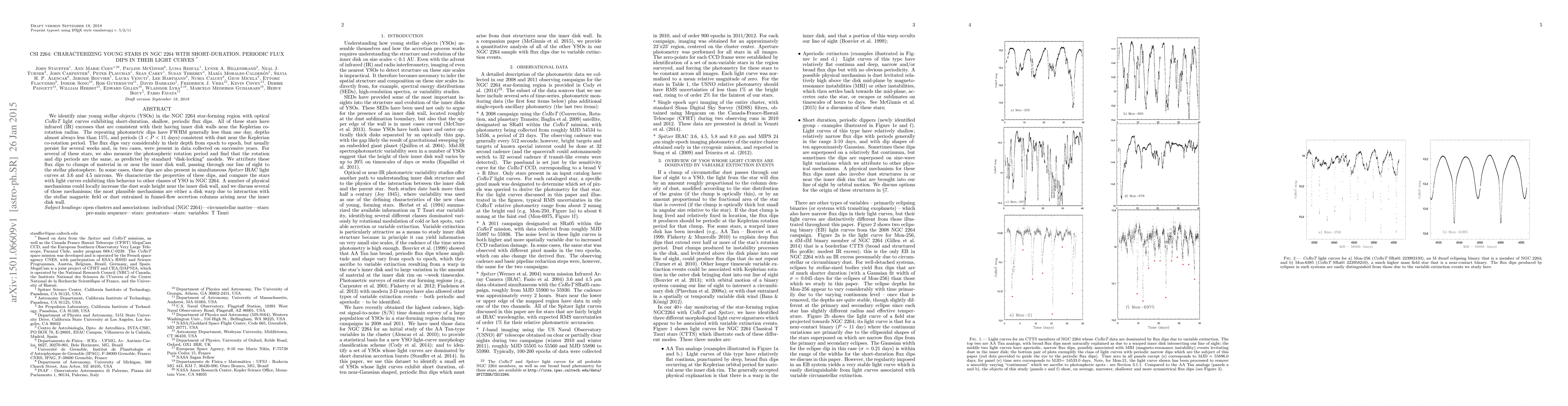 This study identifies nine young stellar objects in NGC 2264 showing periodic, short-duration flux dips in optical light curves, likely due to material in their inner disks passing in front of the star. The dips correlate with the stars' rotation periods, supporting "disk-locking" models.