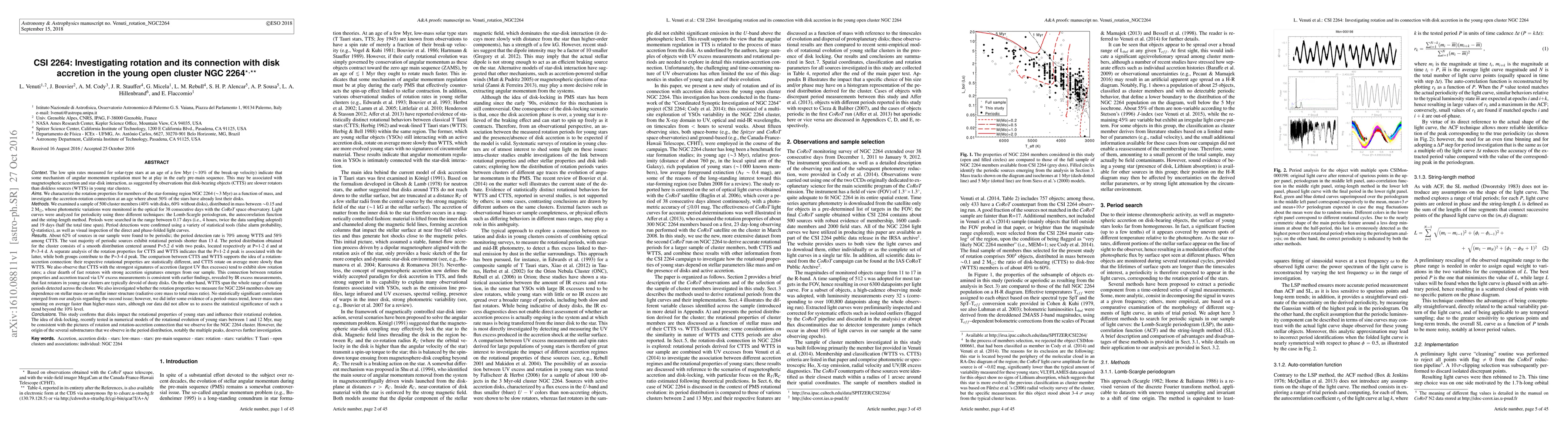 This study investigates the rotation and accretion properties of stars in the young open cluster NGC 2264, finding a rotation-accretion connection where classical T Tauri stars (CTTS) rotate slower than weak T Tauri stars (WTTS) and fast rotators lack strong accretion signatures. The observed period distribution suggests disk-locking effects and mass dependence in rotation rates.