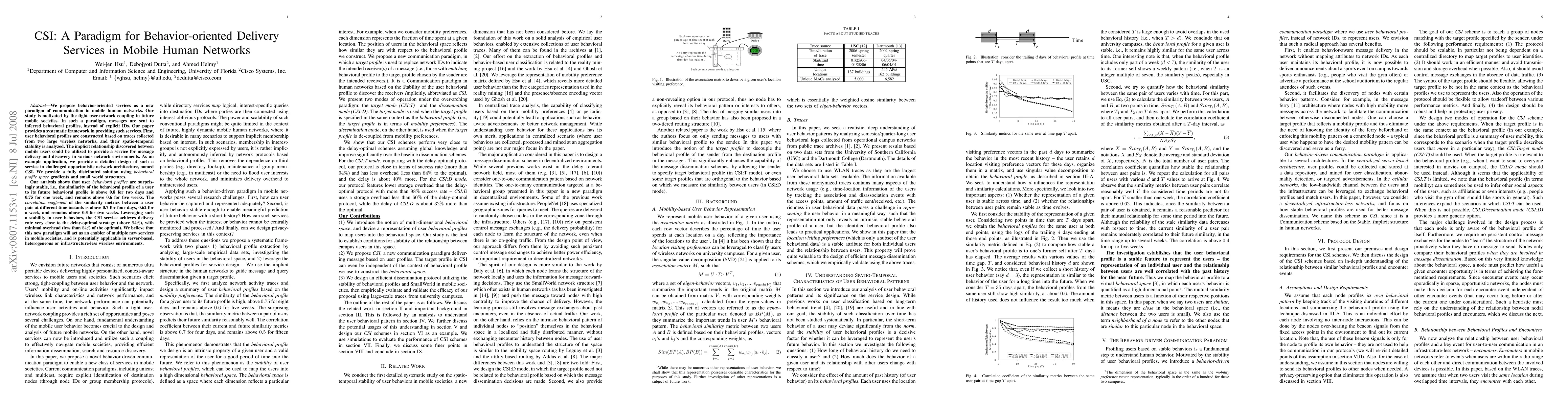 This paper proposes behavior-oriented services as a new communication paradigm in mobile human networks, where messages are sent based on inferred behavioral profiles rather than explicit IDs. The study demonstrates the stability of user behavioral profiles and presents a distributed service, CSI, leveraging these profiles to achieve high delivery rates in opportunistic network environments.