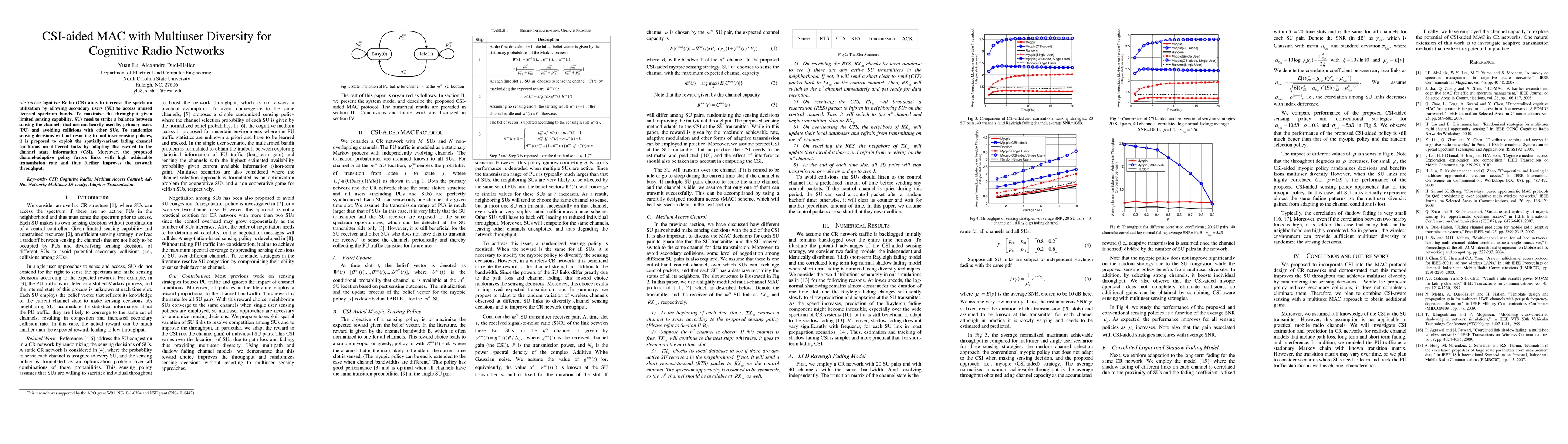 This paper proposes a new method for secondary users in cognitive radio networks to optimize their transmission rates without relying on complex multiuser sensing policies. It uses channel state information to adapt the reward function, improving network throughput by favoring high-rate links.