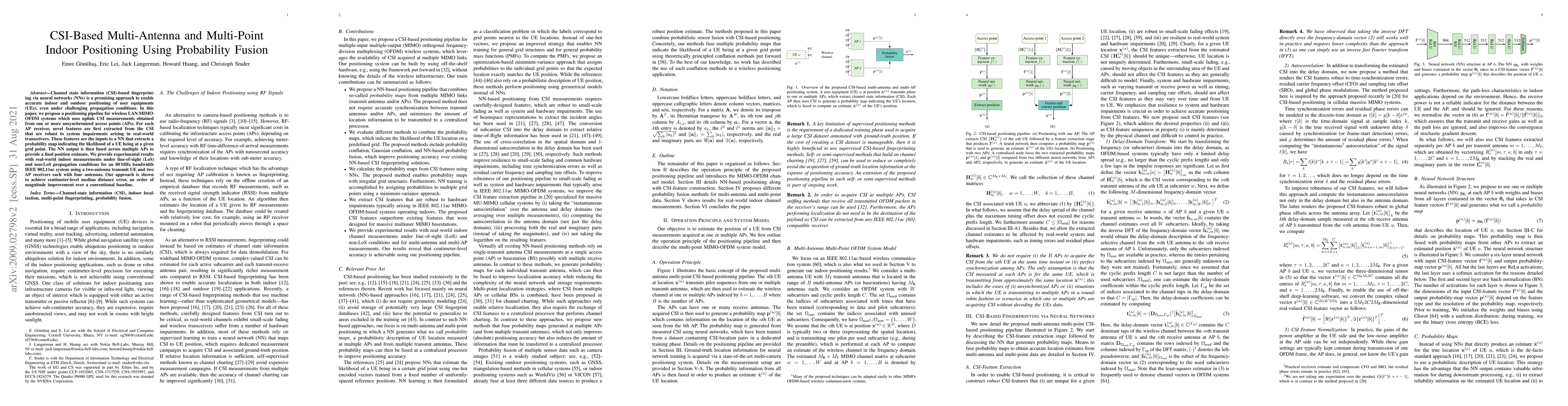 Channel state information (CSI)-based fingerprinting via neural networks (NNs) is a promising approach to enable accurate indoor and outdoor positioning of user equipments (UEs), even under challenging propagation conditions. In this paper, we propose a positioning pipeline for wireless LAN MIMO-OFDM systems which uses uplink CSI measurements obtained from one or more unsynchronized access points (APs). For each AP receiver, novel features are first extracted from the CSI that are robust to system impairments arising in real-world transceivers. These features are the inputs to a NN that extracts a probability map indicating the likelihood of a UE being at a given grid point. The NN output is then fused across multiple APs to provide a final position estimate. We provide experimental results with real-world indoor measurements under line-of-sight (LoS) and non-LoS propagation conditions for an 80MHz bandwidth IEEE 802.11ac system using a two-antenna transmit UE and two AP receivers each with four antennas. Our approach is shown to achieve centimeter-level median distance error, an order of magnitude improvement over a conventional baseline.