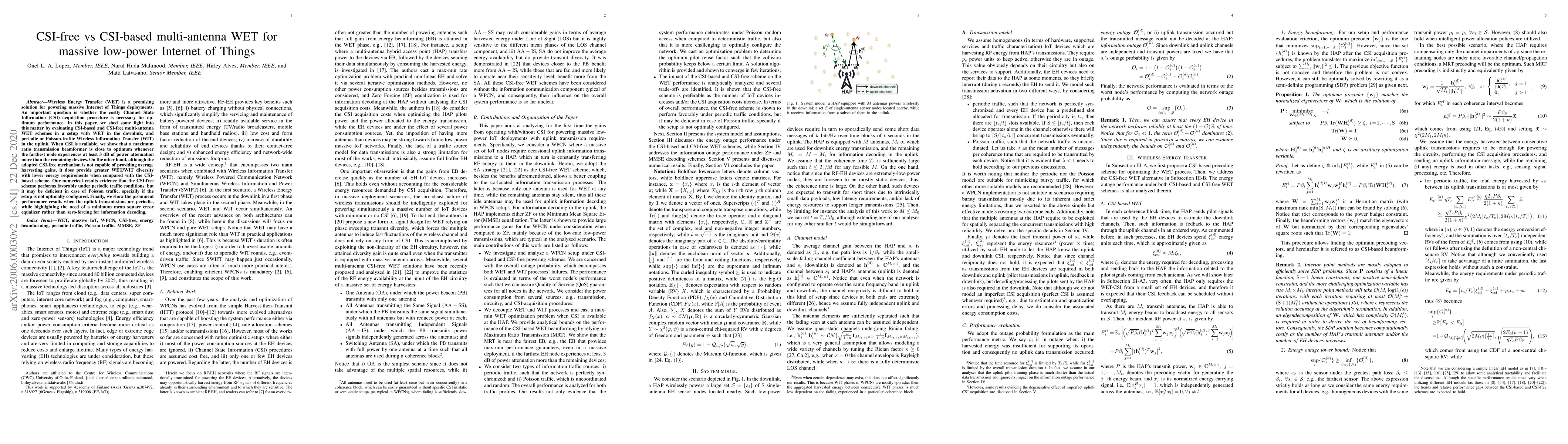 This paper compares CSI-based and CSI-free multi-antenna Wireless Energy Transfer (WET) schemes for massive low-power IoT deployments, finding that the CSI-free approach offers greater WET/WIT diversity and lower energy requirements, though it performs better under periodic traffic conditions.