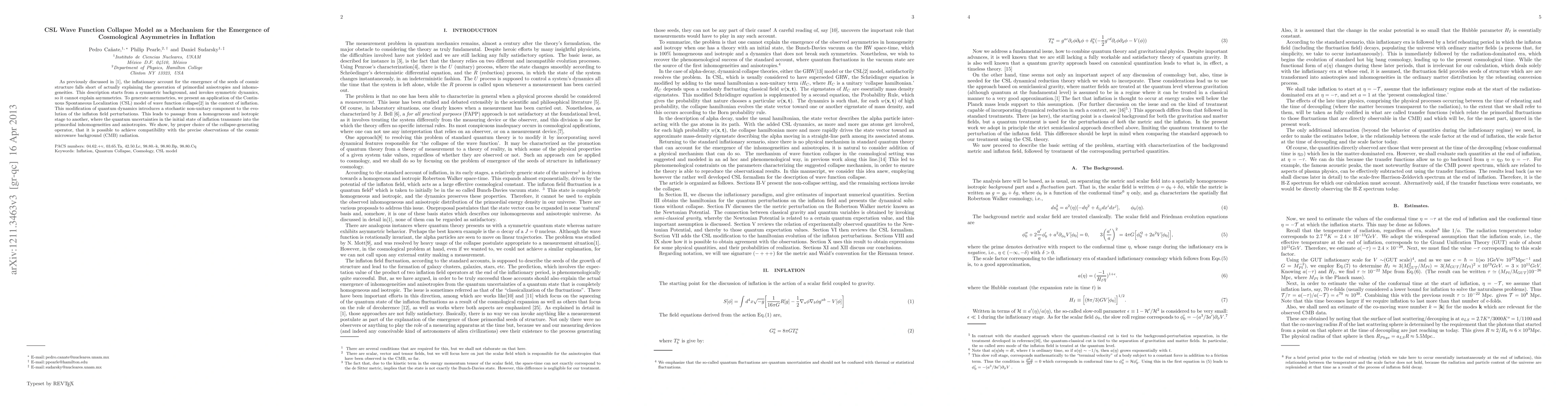 This paper proposes using the Continuous Spontaneous Localization (CSL) model of wave function collapse to introduce asymmetries in the inflationary universe, explaining the generation of primordial anisotropies and inhomogeneities. It modifies quantum dynamics to account for stochastic non-unitary evolution of inflaton field perturbations, leading to the emergence of cosmic structure from initial quantum uncertainties.