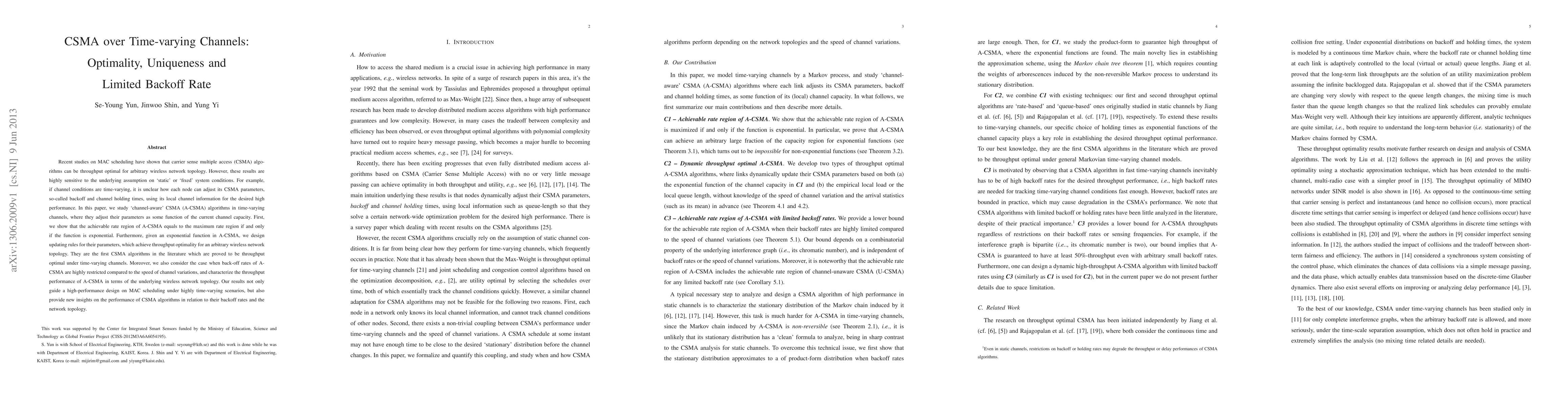 This paper investigates "channel-aware" CSMA algorithms for time-varying wireless channels, proving that exponential functions enable throughput optimality. It also explores the performance under limited backoff rates, offering insights into MAC scheduling design for dynamic network conditions.