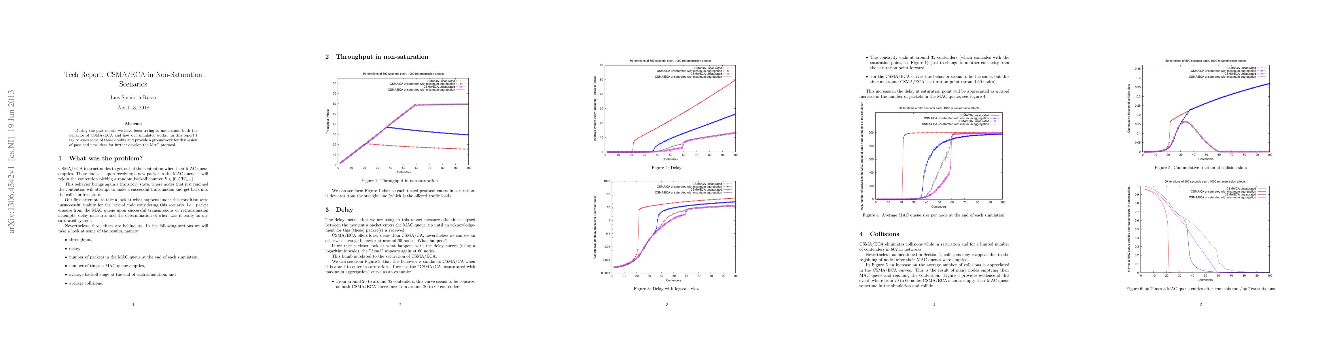 Summary: This paper investigates the behavior of the CSMA/ECA protocol under non-saturation conditions, aiming to clarify uncertainties and lay the foundation for future enhancements to the MAC protocol through simulation analysis.