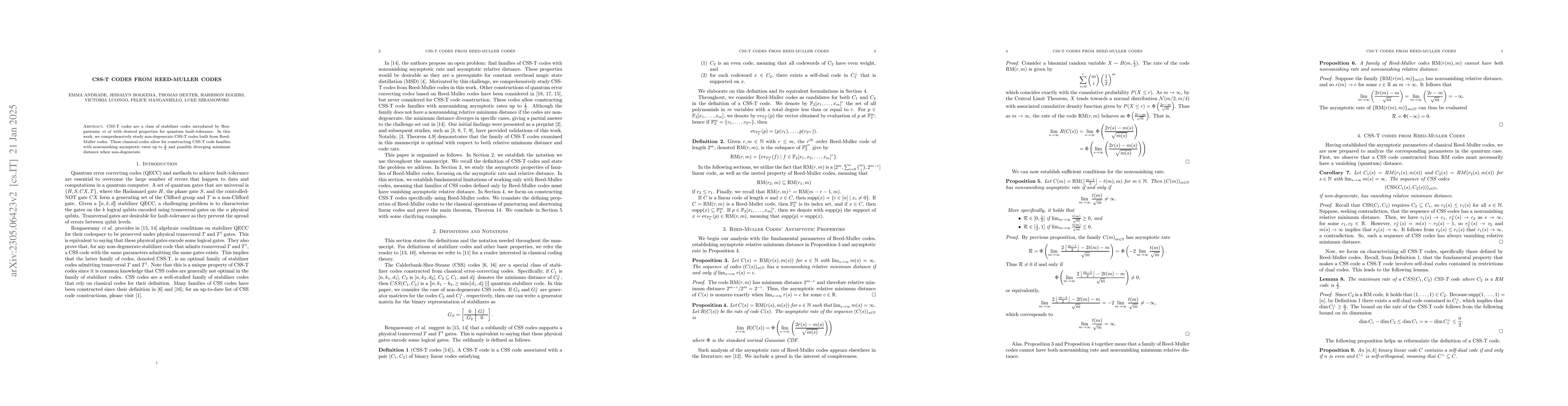 This paper investigates CSS-T codes derived from Reed-Muller codes, demonstrating their potential for quantum fault tolerance with non-vanishing asymptotic rates up to 1/2 and potentially increasing minimum distance, facilitating efficient magic state distillation.