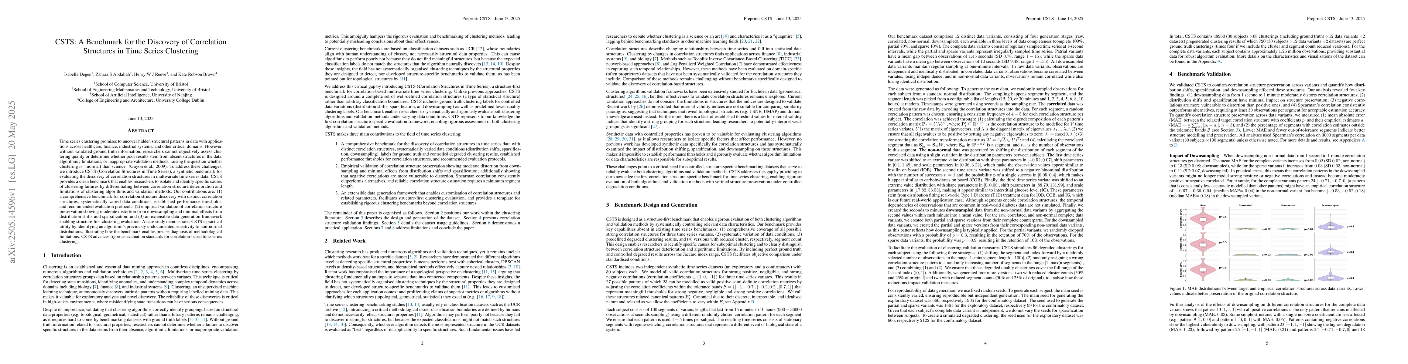 CSTS, a comprehensive benchmark for correlation structure discovery in time series clustering, along with an extensible data generation framework.