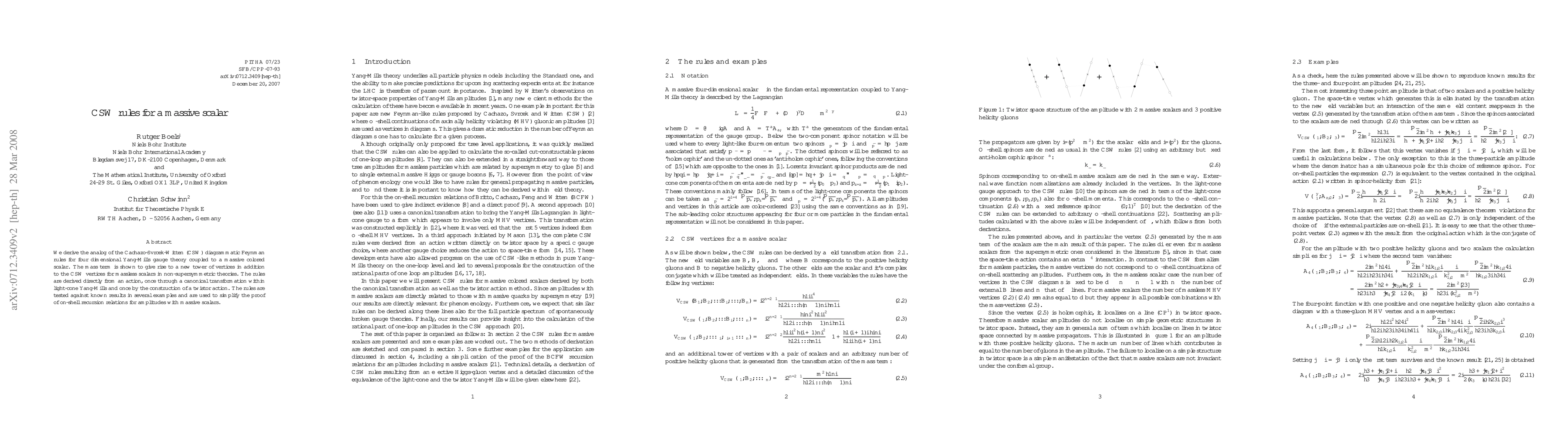 This paper derives CSW rules for a massive scalar in four-dimensional Yang-Mills theory, introducing new vertices due to the mass term. The rules are derived from both light-cone and twistor formulations and are tested against known results to simplify the proof of on-shell recursion relations.