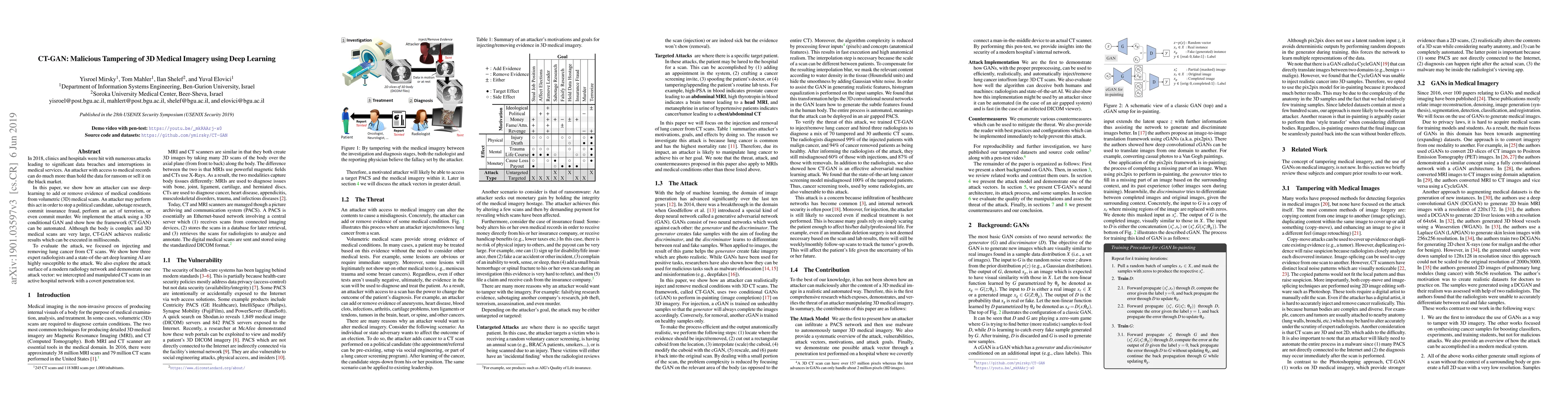 This paper demonstrates how deep learning can be used to manipulate 3D medical scans by adding or removing evidence of medical conditions, using a 3D conditional GAN called CT-GAN. The study shows that both expert radiologists and AI systems - The generated text has been blocked by our content filters.