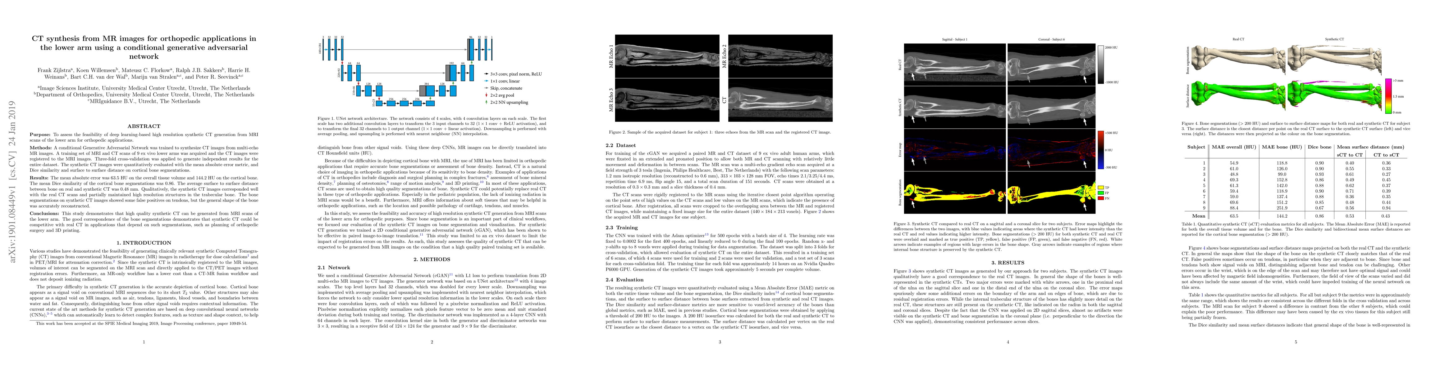 This study successfully synthesizes high-resolution synthetic CT images from MRI scans of the lower arm using a conditional Generative Adversarial Network, showing promising results in bone segmentation accuracy and potential for orthopedic applications.