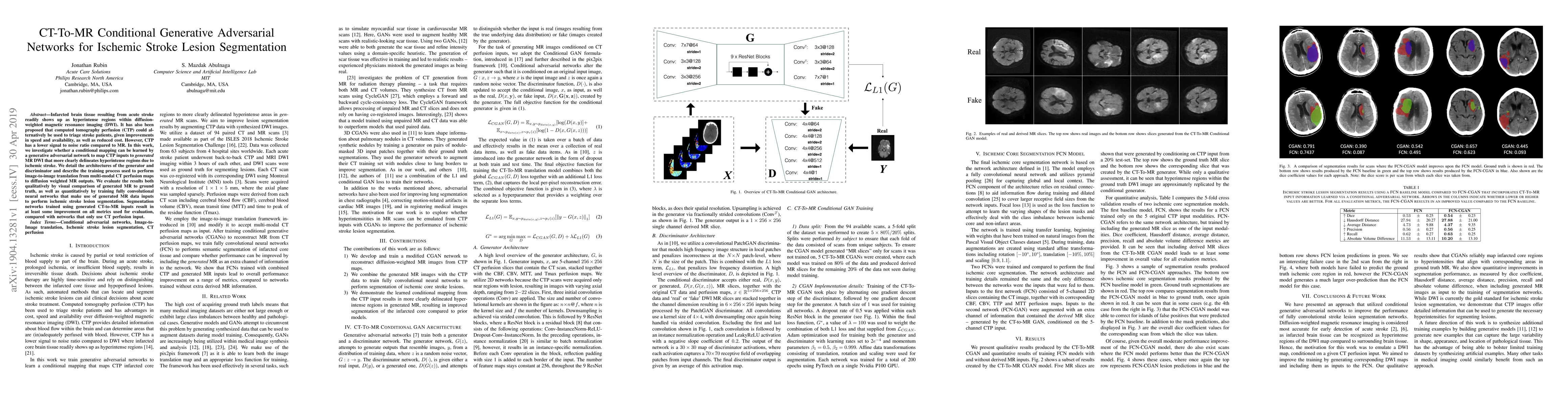 The paper presents a modified CGAN architecture specifically designed for translating CT perfusion data into synthetic DWI-like MR images, facilitating improved ischemic stroke lesion segmentation using FCNs.