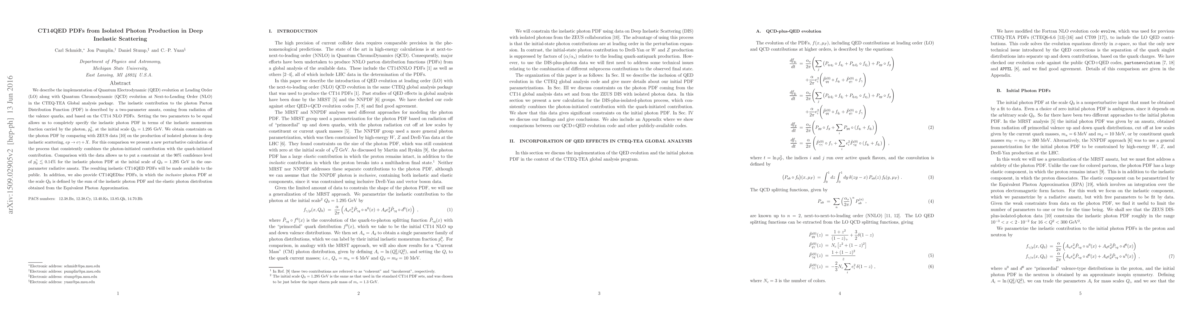 This paper presents the implementation of QED and QCD evolutions in the CTEQ-TEA Global analysis, defining an inelastic photon Parton Distribution Function (PDF) based on CT14 NLO PDFs. The study constrains the inelastic photon PDF using ZEUS data on isolated photon production in deep inelastic scattering, resulting in a 90% confidence level constraint of $p_0^\gamma\lesssim0.14\%$ at $Q_0=1.295$ GeV.