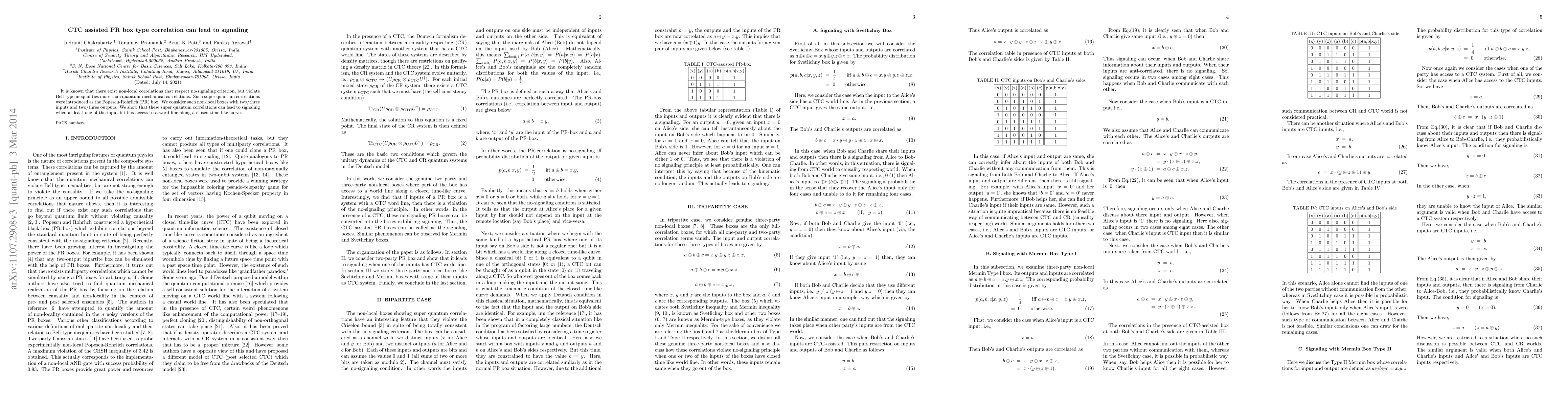 Summary: This paper explores non-local correlations in Popescu-Rohrlich (PR) boxes that exceed quantum correlations and can violate Bell-type inequalities. It demonstrates that these super quantum correlations can enable signaling when an input bit is connected to a closed time-like curve.