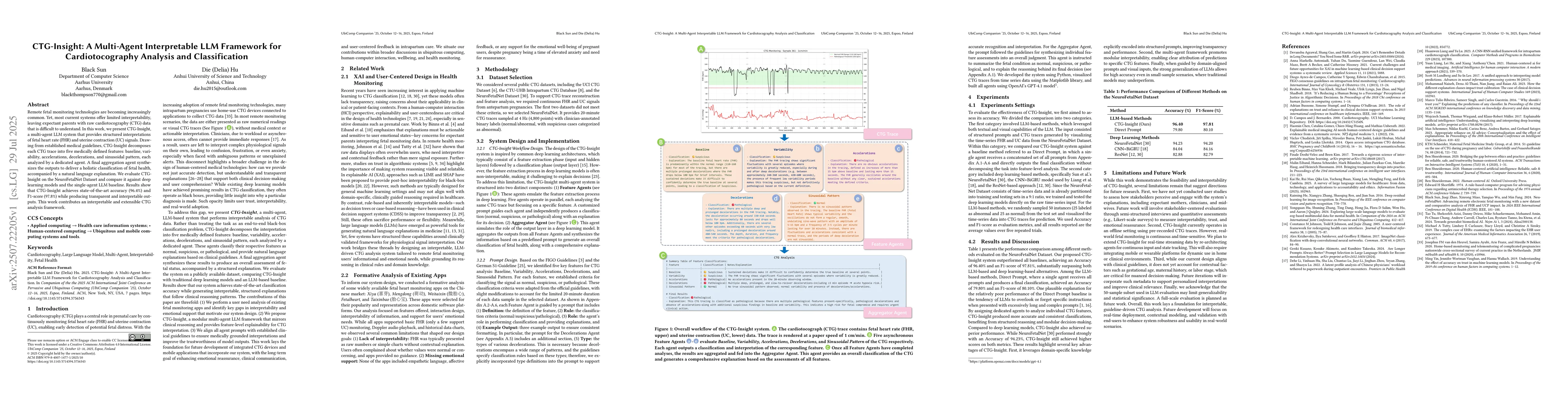 Remote fetal monitoring technologies are becoming increasingly common. Yet, most current systems offer limited interpretability, leaving expectant parents with raw cardiotocography (CTG) data that is difficult to understand. In this work, we present CTG-Insight, a multi-agent LLM system that provides structured interpretations of fetal heart rate (FHR) and uterine contraction (UC) signals. Drawing from established medical guidelines, CTG-Insight decomposes each CTG trace into five medically defined features: baseline, variability, accelerations, decelerations, and sinusoidal pattern, each analyzed by a dedicated agent. A final aggregation agent synthesizes the outputs to deliver a holistic classification of fetal health, accompanied by a natural language explanation. We evaluate CTG-Insight on the NeuroFetalNet Dataset and compare it against deep learning models and the single-agent LLM baseline. Results show that CTG-Insight achieves state-of-the-art accuracy (96.4%) and F1-score (97.8%) while producing transparent and interpretable outputs. This work contributes an interpretable and extensible CTG analysis framework.