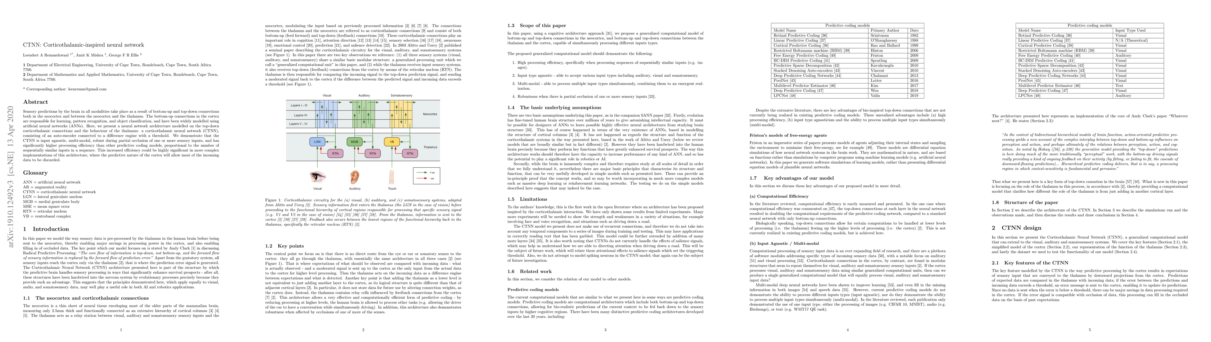 A new neural network called CTNN mimics brain connections between cortex and thalamus, showing improved efficiency in predicting sensory data, robustness to partial input loss, and multi-modal capabilities.