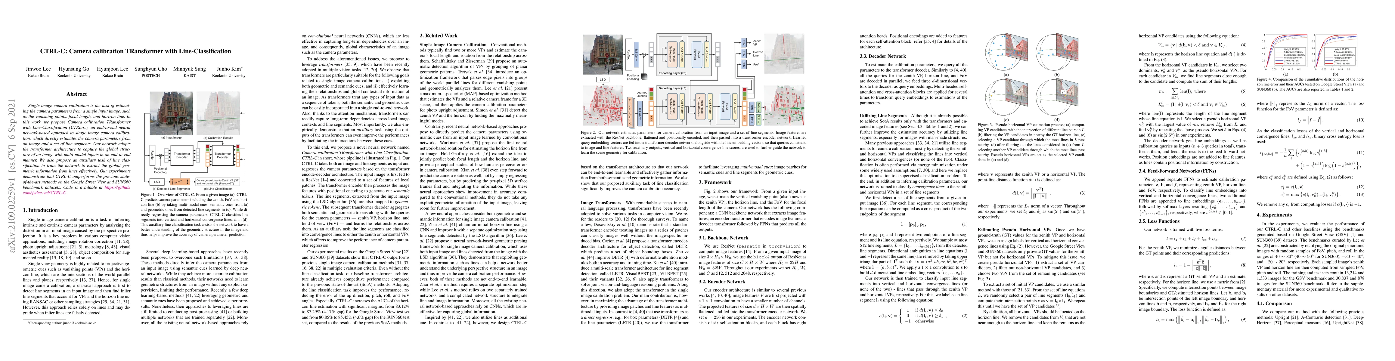 CTRL-C is a transformer-based neural network for single image camera calibration that directly estimates camera parameters using line segments. It incorporates an auxiliary line classification task to enhance global geometric information extraction, outperforming previous methods on benchmark datasets.
