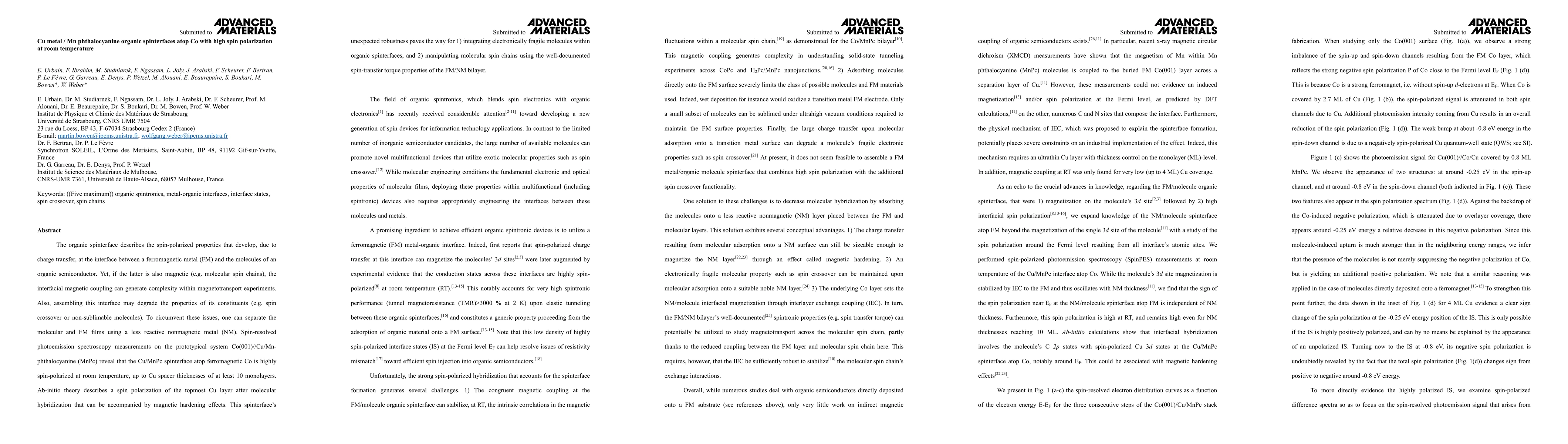 This study investigates a spin-polarized organic spinterface formed by Cu atop Mn phthalocyanine on Co, revealing high spin polarization at room temperature even with Cu spacer layers up to 10 monolayers. Theoretical and experimental results suggest the potential for integrating fragile molecules and manipulating spin chains using the FM/NM bilayer.