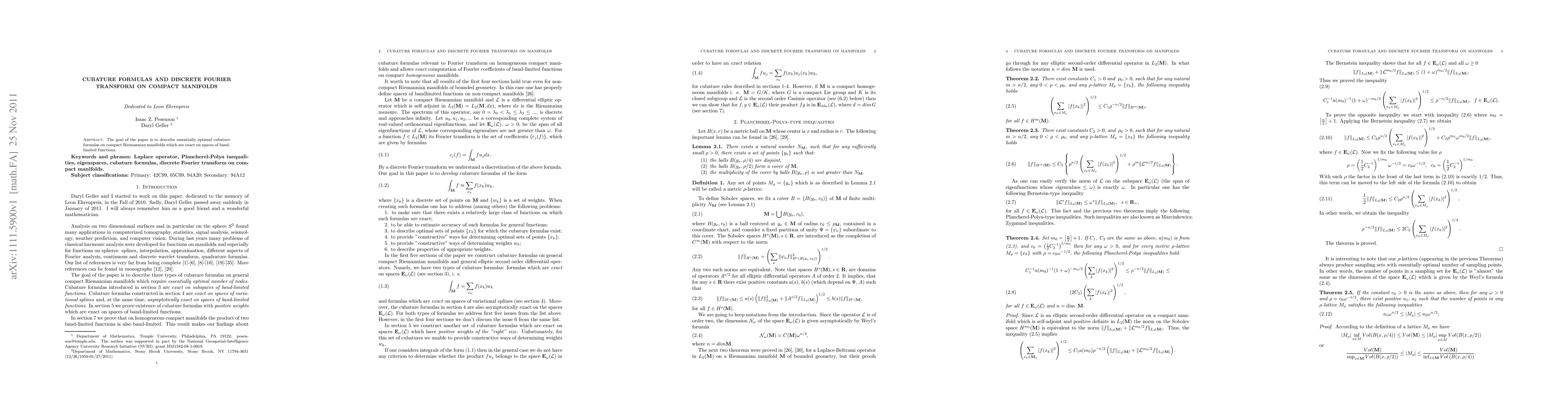Summary: This paper develops optimal cubature formulas on compact Riemannian manifolds that precisely integrate band-limited functions, leveraging the discrete Fourier transform for enhanced accuracy.