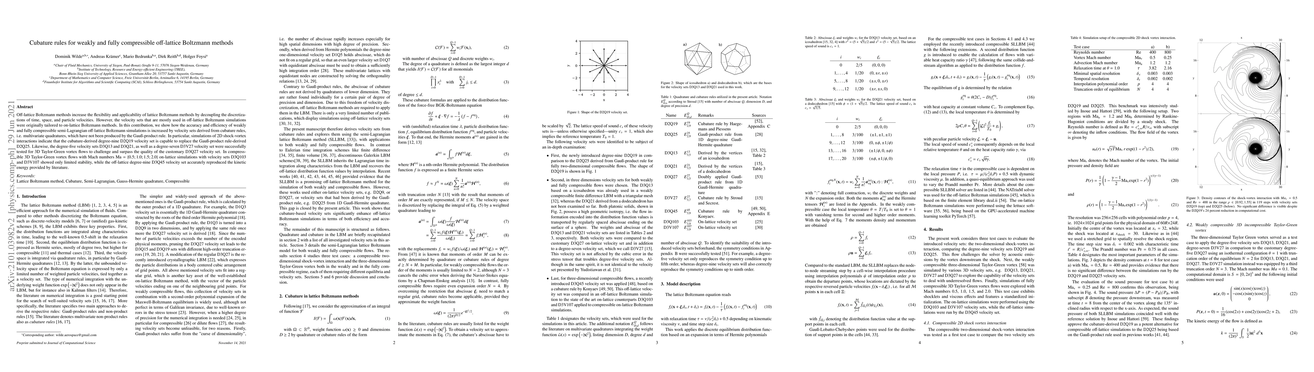 This paper proposes the use of cubature rules to derive new velocity sets for off-lattice Boltzmann methods, improving the accuracy and efficiency of weakly and fully compressible simulations. The cubature-derived velocity sets outperform traditional Gaussian-based sets in various 2D and 3D flow simulations, demonstrating enhanced stability and accuracy in compressible flows.
