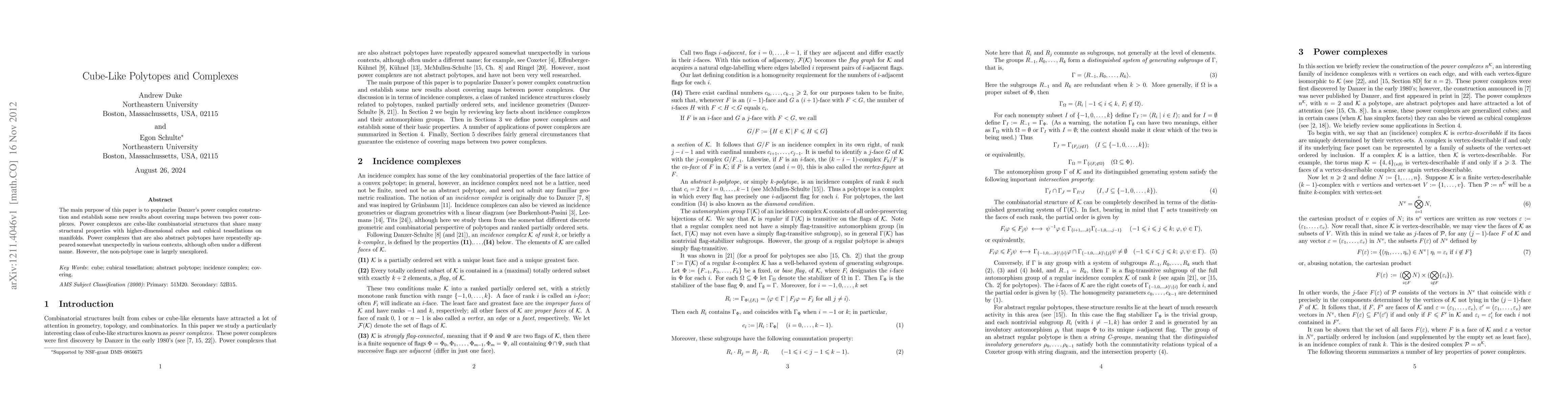 This paper explores Danzer's power complex construction, focusing on establishing new results about covering maps between these cube-like combinatorial structures, which share properties with higher-dimensional cubes and cubical tessellations. It highlights the largely unexplored non-polytope cases of these power complexes.