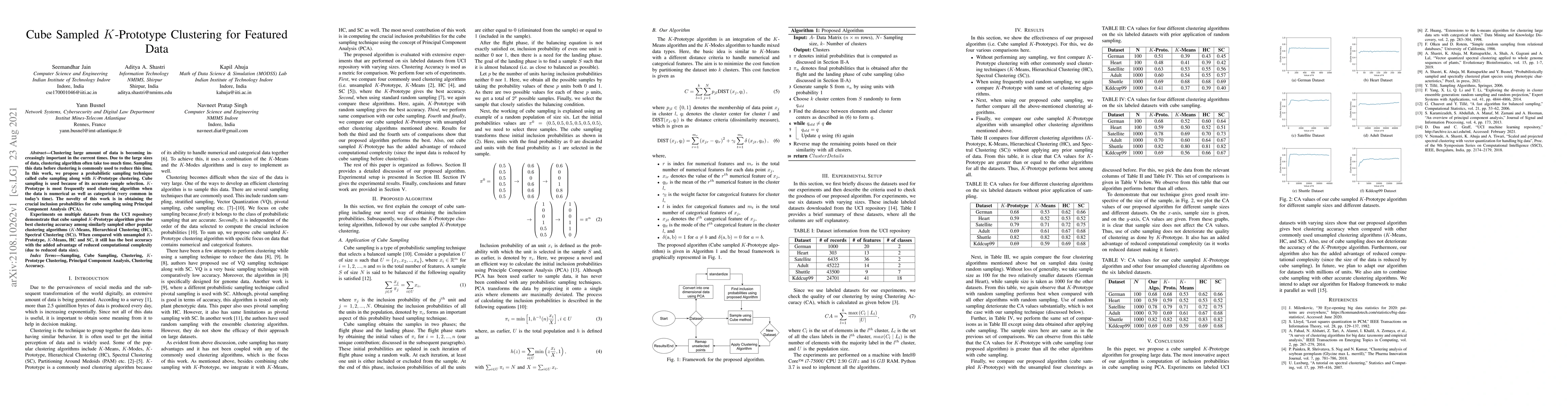 This research paper proposes a new clustering algorithm that uses cube sampling and K-Prototype to improve accuracy and reduce computational complexity, outperforming other popular algorithms on multiple datasets.
