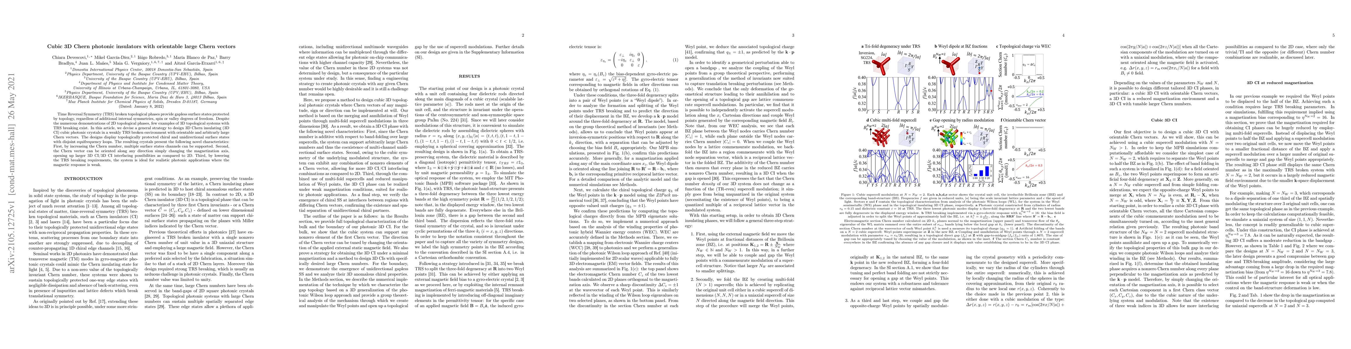 Time Reversal Symmetry (TRS) broken topological phases provide gapless surface states protected by topology, regardless of additional internal symmetries, spin or valley degrees of freedom. Despite the numerous demonstrations of 2D topological phases, few examples of 3D topological systems with TRS breaking exist. In this article, we devise a general strategy to design 3D Chern insulating (3D CI) cubic photonic crystals in a weakly TRS broken environment with orientable and arbitrarly large Chern vectors. The designs display topologically protected chiral and unidirectional surface states with disjoint equifrequency loops. The resulting crystals present the following novel characteristics: First, by increasing the Chern number, multiple surface states channels can be supported. Second, the Chern vector can be oriented along any direction simply changing the magnetization axis, opening up larger 3D CI/3D CI interfacing possibilities as compared to 2D. Third, by lowering the TRS breaking requirements, the system is ideal for realistic photonic applications where the magnetic response is weak.
