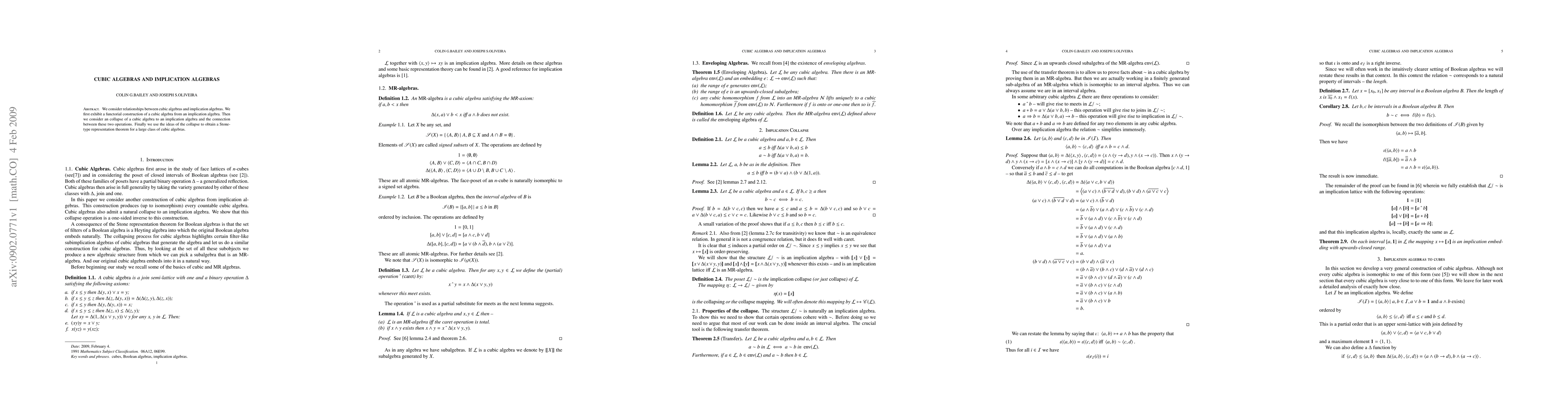 The paper explores relationships between cubic algebras and implication algebras, constructing a cubic algebra from an implication algebra and examining the collapse of a cubic algebra to an implication algebra.