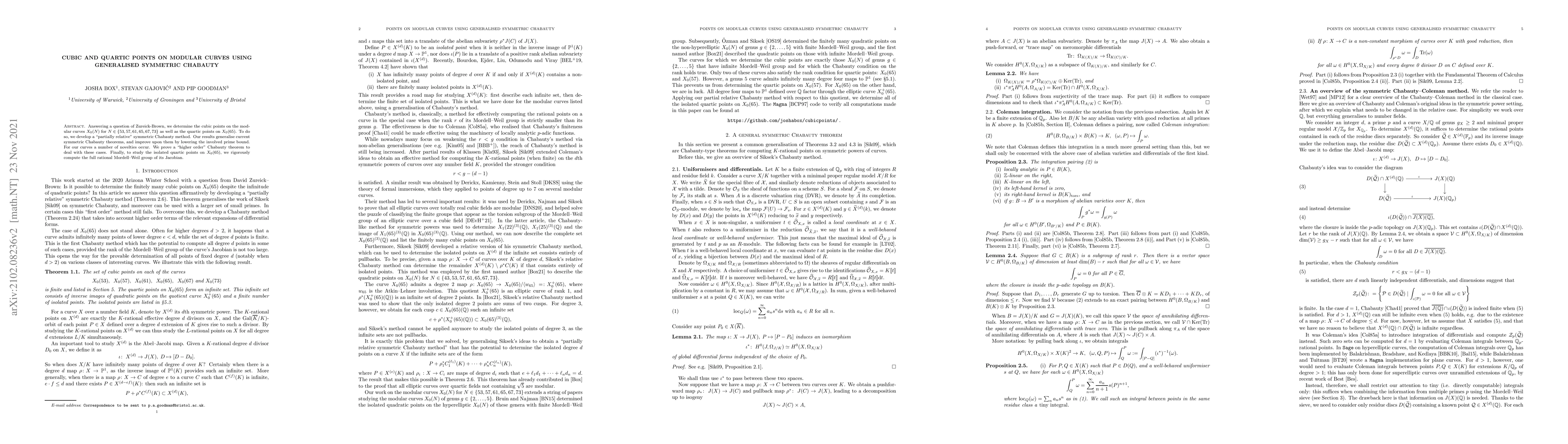 Researchers develop a new method to find points on modular curves, determining cubic points for 6 specific values of N and quartic points for X_0(65), generalizing existing theorems and improving their applicability.