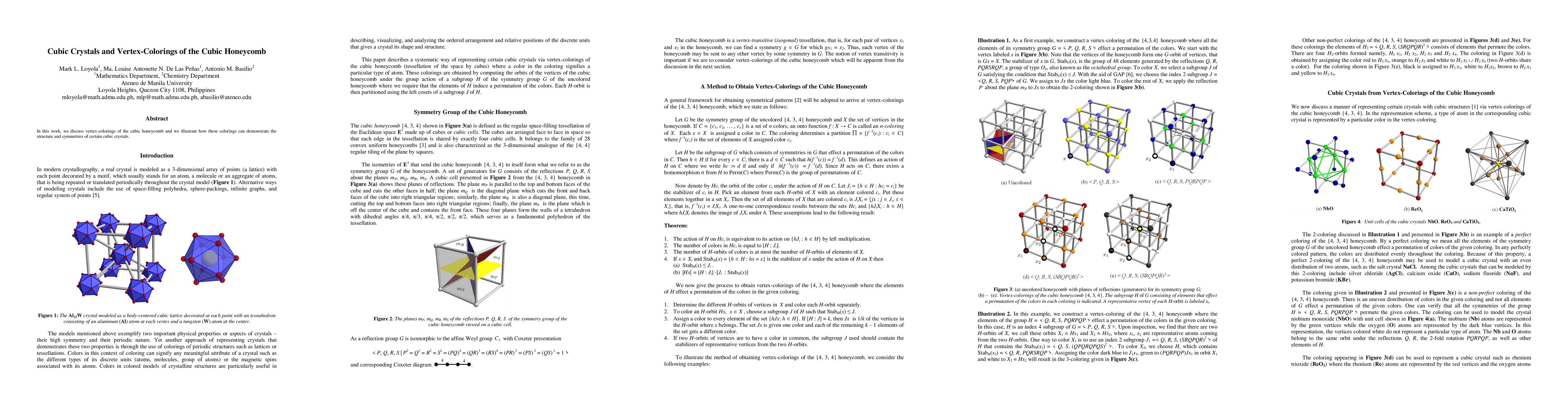 In this work, we discuss vertex-colorings of the cubic honeycomb and we illustrate how these colorings can demonstrate the structure and symmetries of certain cubic crystals.