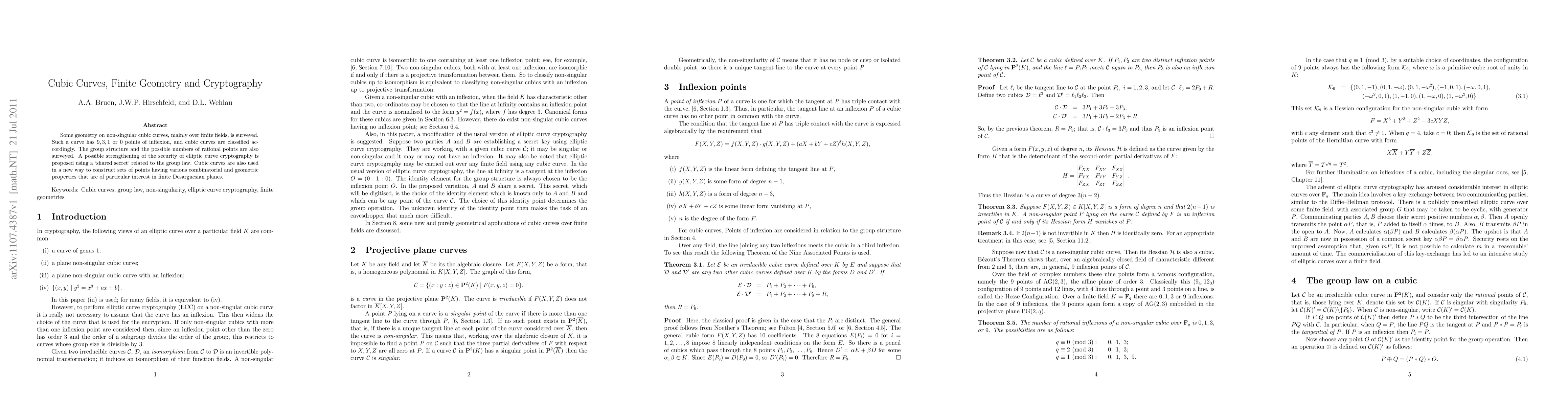 Key findings include the classification of cubic curves based on their inflexion points, analysis of group structure and rational point numbers, and potential applications in Desarguesian planes.