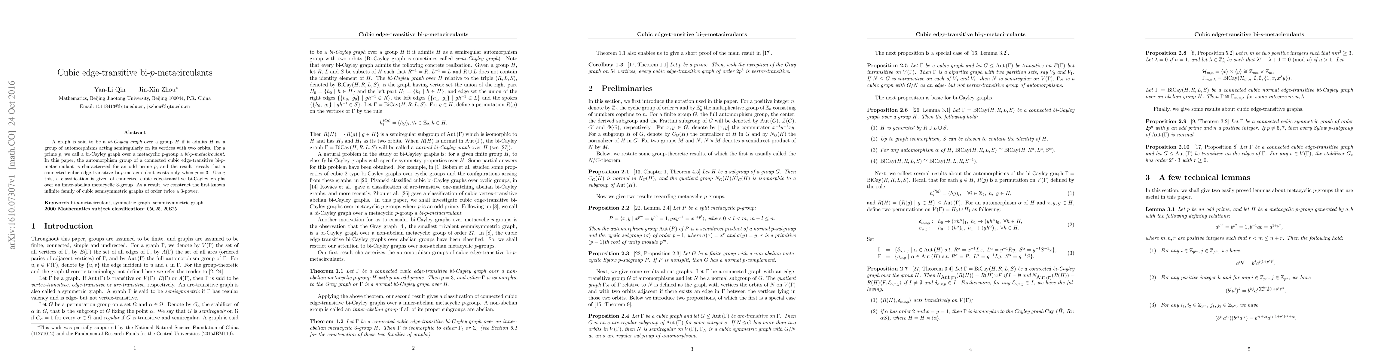 This paper characterizes the automorphism group of cubic edge-transitive bi-p-metacirculants for odd primes, finding that such graphs exist only when the prime is 3. It classifies cubic edge-transitive bi-Cayley graphs over a specific 3-group and constructs an infinite family of cubic semisymmetric graphs of order twice a 3-power.