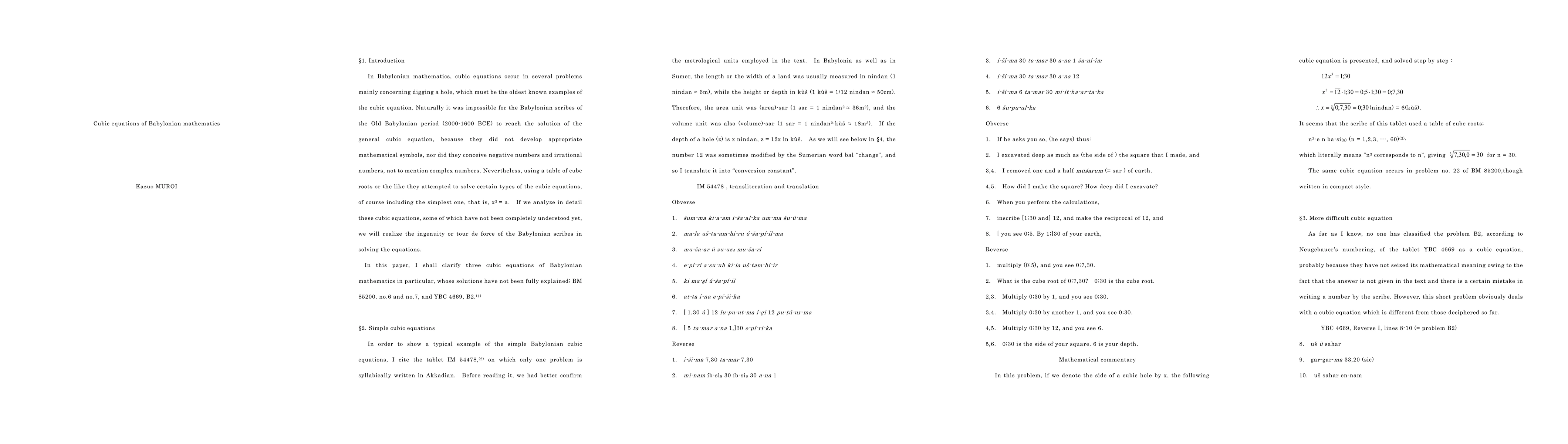 In this paper I shall clarify three cubic equations of Babylonian mathematics, whose solutions have not been fully explained; BM 85200, no.6 and no.7, and YBC 4669 B2.