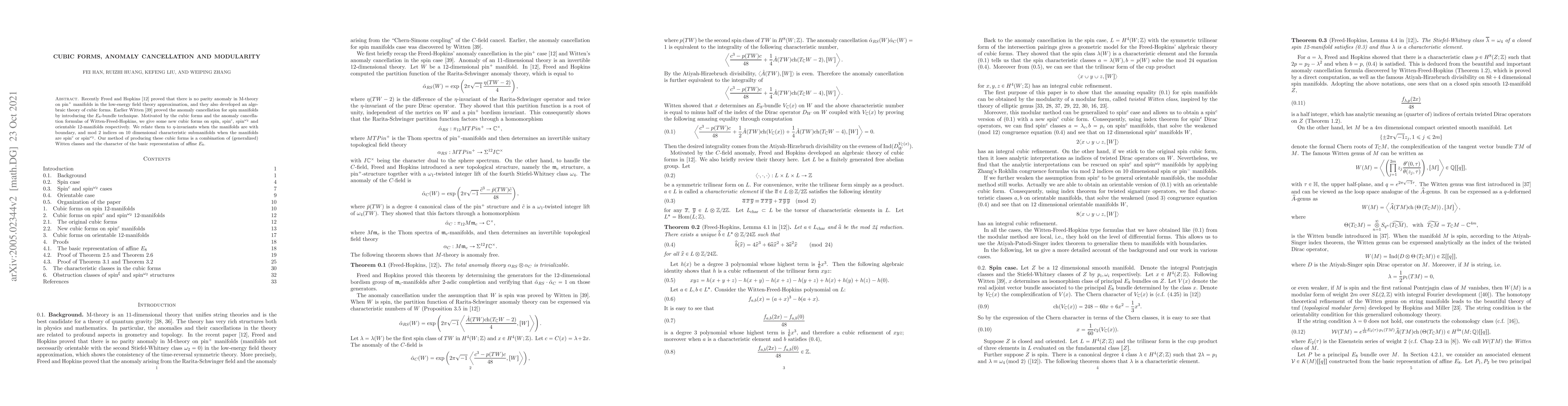 This paper introduces new cubic forms on various 12-manifolds, linking them to $\eta$-invariants and mod 2 indices, using a method combining generalized Witten classes and the affine $E_8$ representation character. The work is motivated by anomaly cancellation and relates to physical theories.