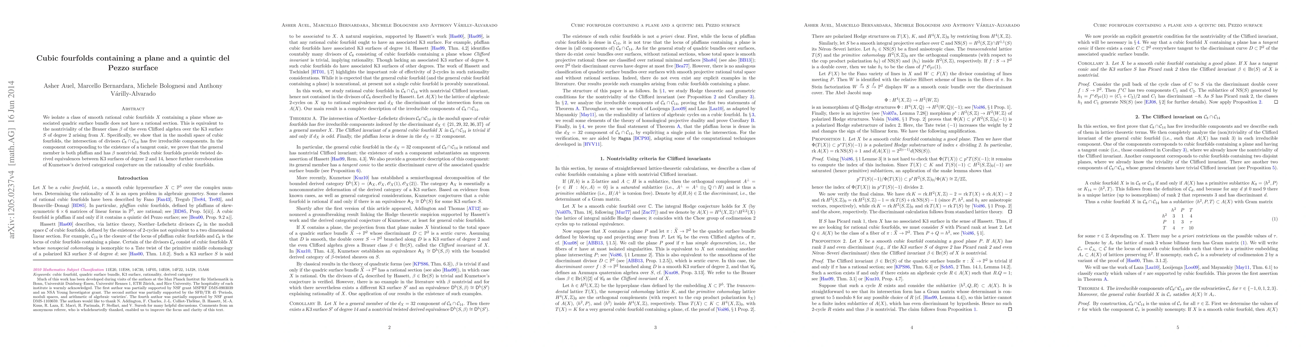 This research identifies a class of smooth rational cubic fourfolds containing a plane and a quintic del Pezzo surface, demonstrating the nontriviality of their associated Brauer class. The study reveals five irreducible components in the moduli space of cubic fourfolds, with specific focus on the one linked to tangent conics in the sextic degeneration curve, proving these cubic fourfolds also facilitate derived equivalences between K3 surfaces.