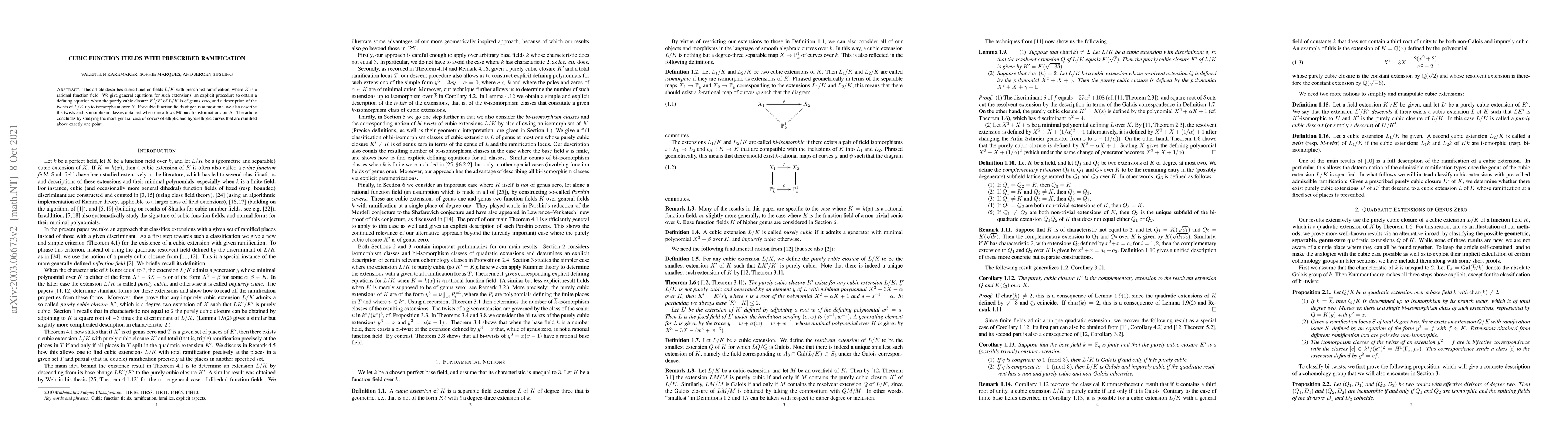 This paper provides equations for cubic function field extensions $L/K$ with specified ramification, detailing methods for obtaining defining equations when the genus is zero. It also explores the twists of these extensions and their isomorphism classes, extending the analysis to covers of elliptic and hyperelliptic curves ramified at a single point.