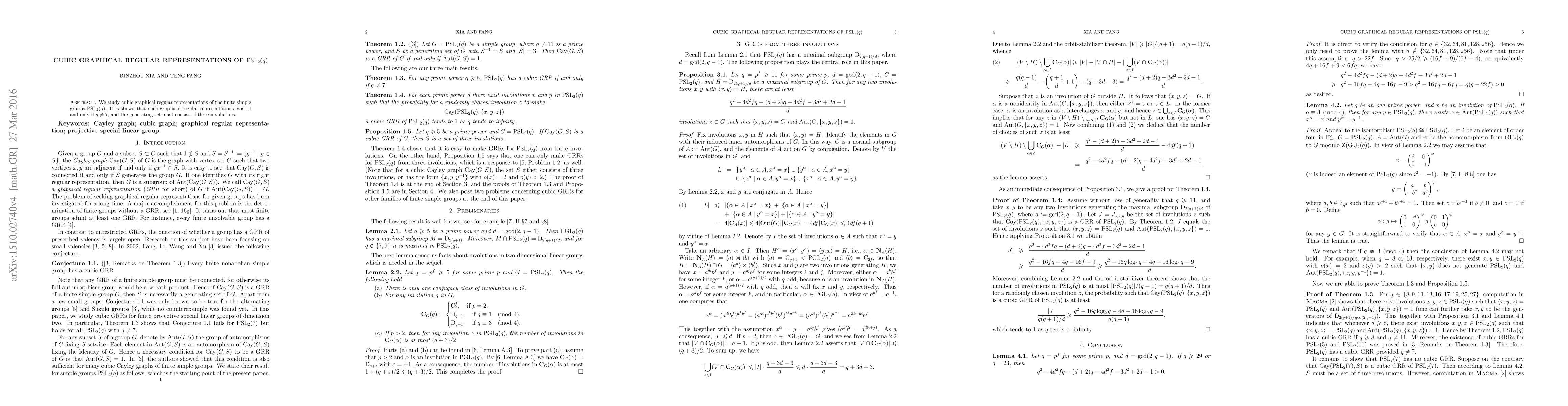 Summary: This paper investigates cubic graphical regular representations of the finite simple group $PSL_2(q)$, concluding that such representations exist if and only if $q \neq 7$, with the generating set comprising three involutions.