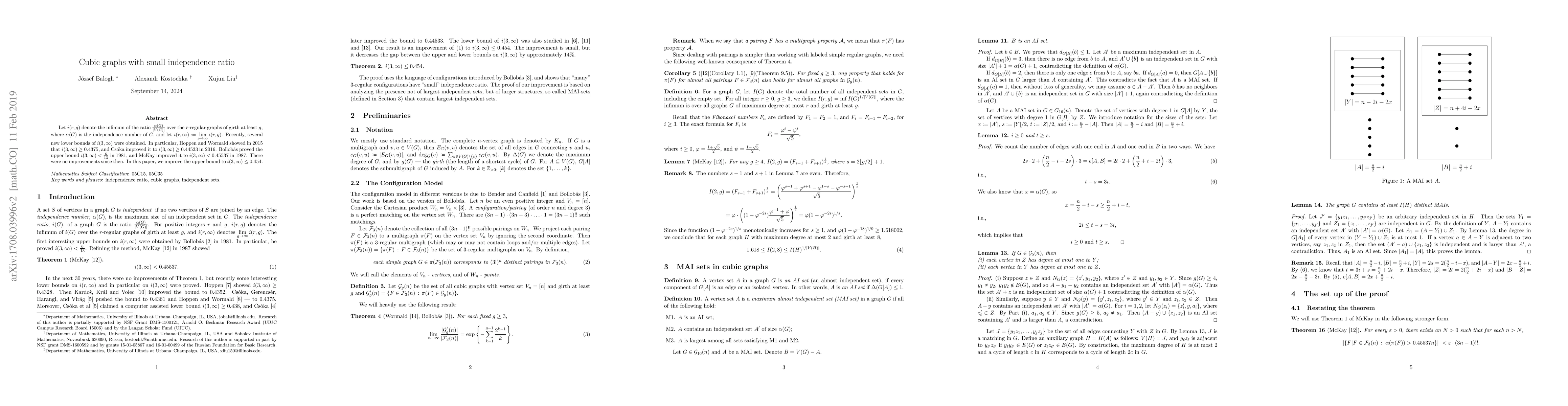 Researchers improved the upper bound for the independence ratio of cubic graphs to 0.454, building on previous lower bounds and bounds established in the 1980s.