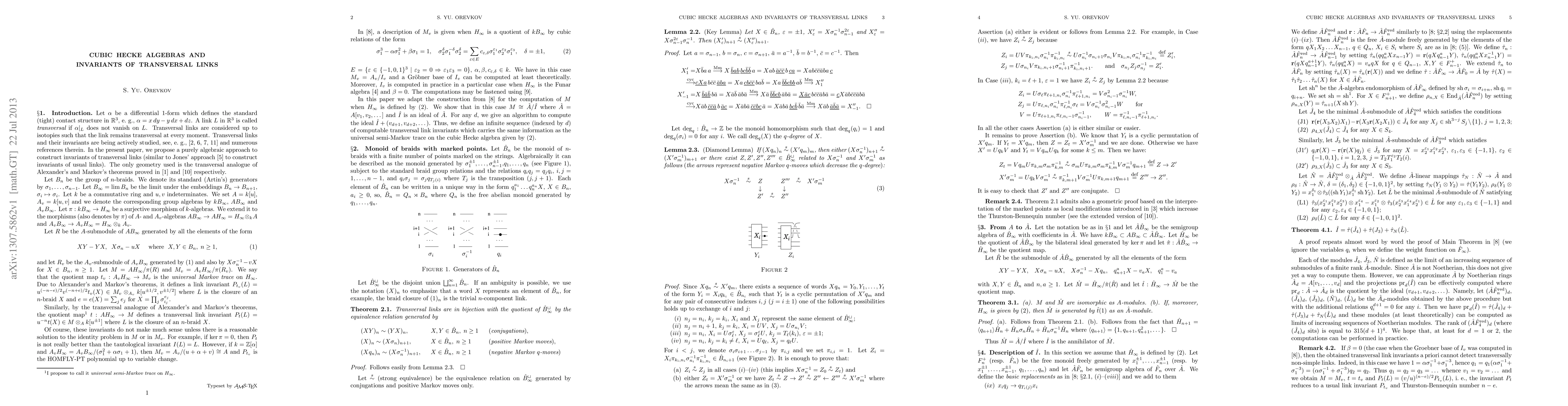 The paper introduces a semi-Markov trace on cubic Hecke algebras and provides an algorithm for computing a Groebner base of an associated ideal, establishing a link between algebraic and geometric aspects of transversal links