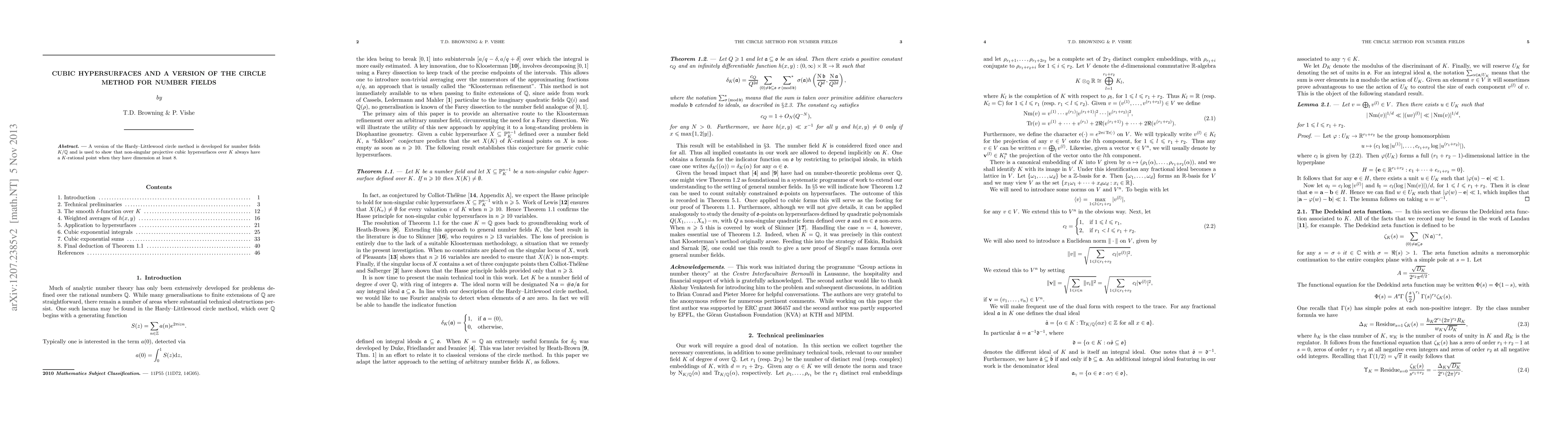 A new method for finding rational points on cubic hypersurfaces over number fields is introduced, showing that such surfaces always have a rational point when their dimension is at least 8.