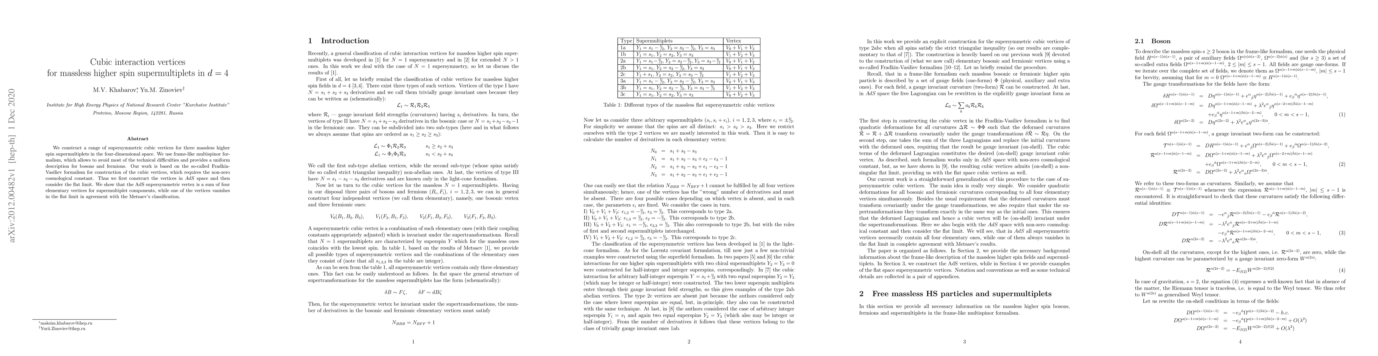 Researchers developed supersymmetric cubic vertices for massless higher spin supermultiplets in 4D space, using the Fradkin-Vasiliev formalism and frame-like multispinor formalism to study AdS and flat limits.